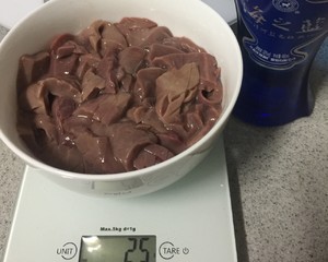 这是6只腰花的量,铁锅,5分钟左右,腰花都变色了,就可以加水了。