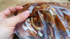 放入冰箱,上面压点重物,冷藏3天。每半天取出,将袋子翻个身,继续冷藏