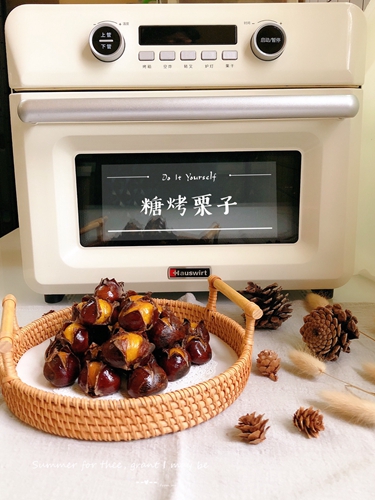 做法分解12:烤好的板栗晾温就可以吃了,味道还不错,就是糖汁吸收的还不够,应该要泡久一些,让板栗吸收一下糖汁,味道就更好了!
