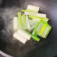 做法分解4:起锅上火倒入适量油,油热后下入葱段,用小火慢炸。