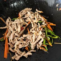 做法分解5:起锅烧油,把腌制好的肉丝放进去炒熟捞出来,油可以多一点,不会粘锅