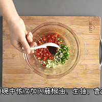 做法分解8:向碗中依次加入藤椒油、生抽、香油