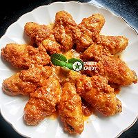 做法分解9:放入炸好的翅中,充分裹上金沙酱,出锅摆盘?。