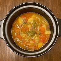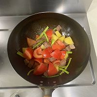 做法分解3:加入适量米醋,再下西红柿、牛肉中火翻炒3min